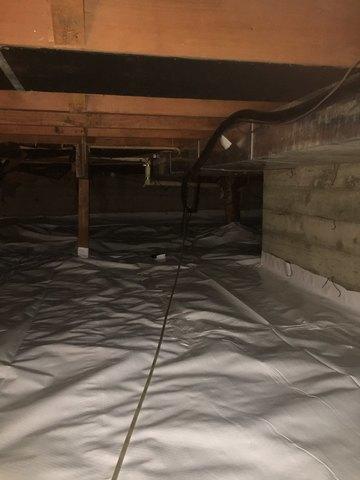 Customer experiencing odors and musty smell coming from crawlspace area. Cleanspace was installed isolating the exposed dirt of the crawlspace from the living area and a Sanidry dehumidifier to provide better air quality throughout the home